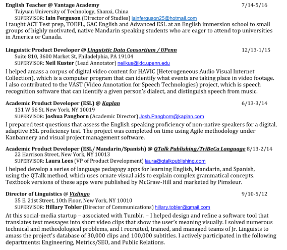 國籍: 美國 求職意向: 教師