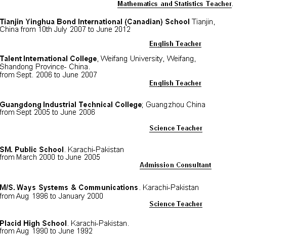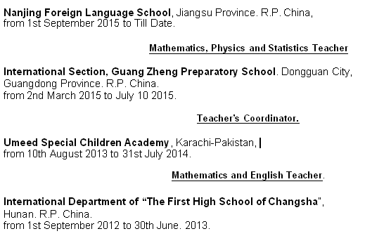 巴基斯坦外教 英語專業(yè)碩士 數(shù)學(xué) 科學(xué)本科 15年教學(xué)經(jīng)驗(yàn) 求職數(shù)學(xué)科學(xué)職位 |