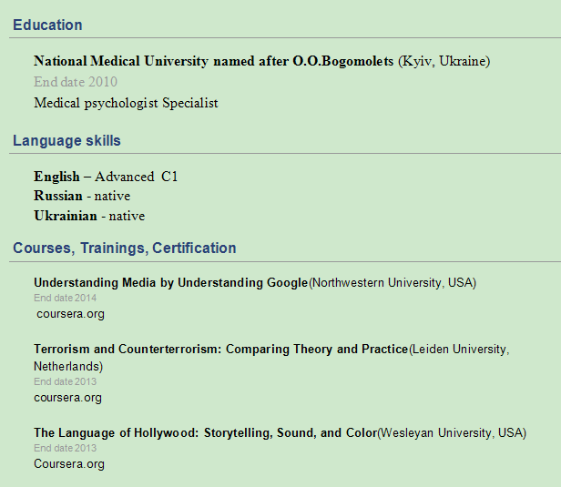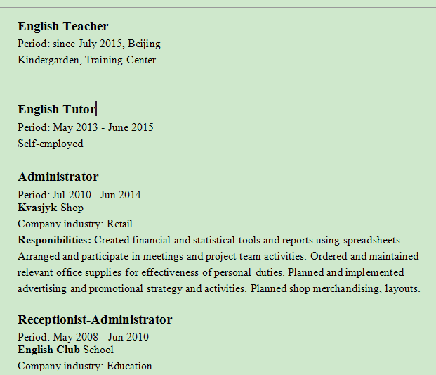 國籍: 美國 求職意向: 教師