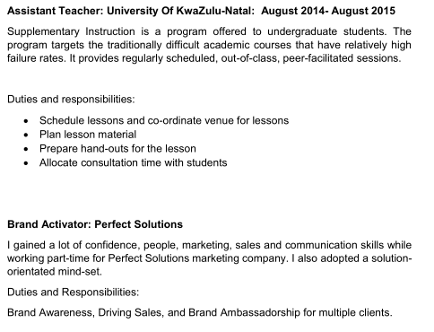 國(guó)籍: 南非 求職意向: 教師