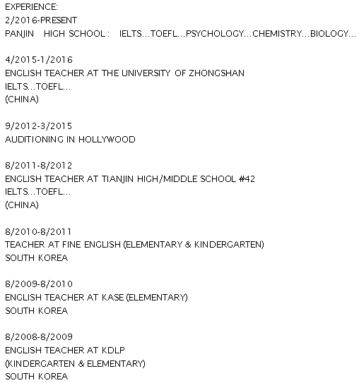 國(guó)籍: 美國(guó) 求職意向: 教師