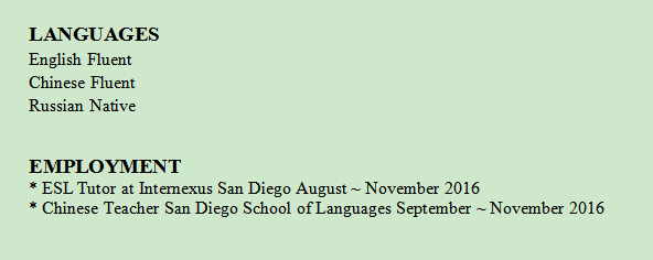 國(guó)籍: 美國(guó) 求職意向: 教師