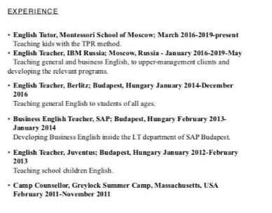 俄羅斯, 商務(wù)簽, 經(jīng)驗(yàn)多余5年, 發(fā)音好。英語本科, 求職深圳, 可以做demo。 |