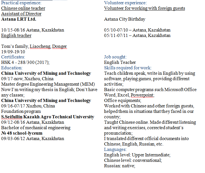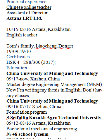 國籍: 南非 求職意向: 教師