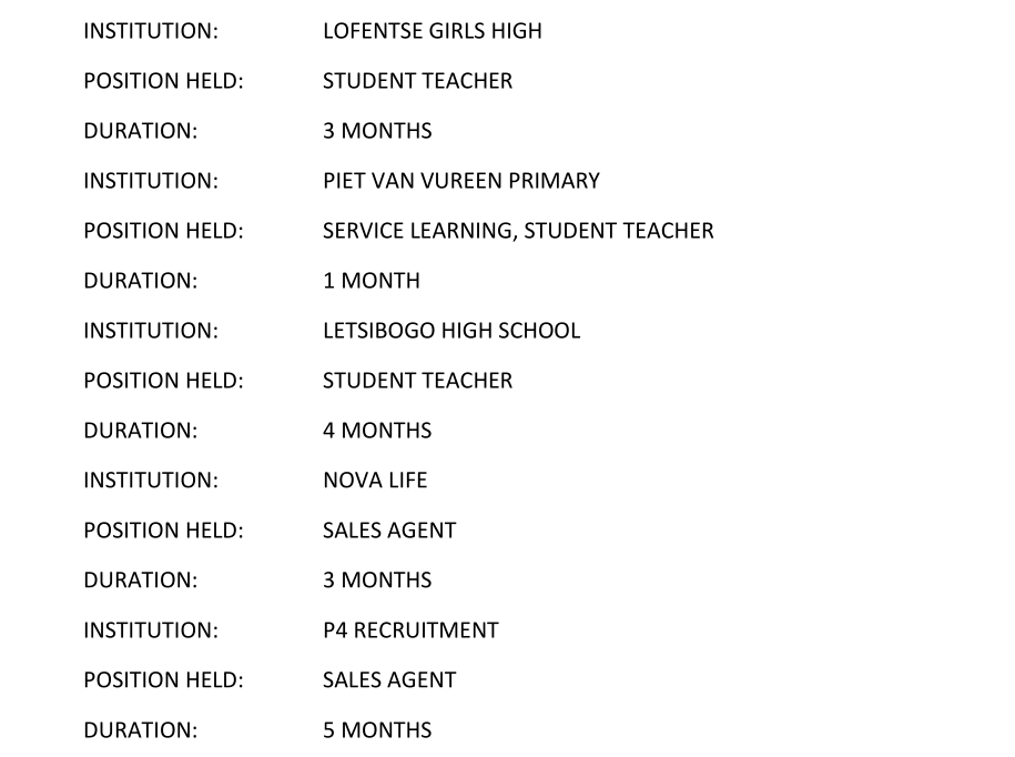 國(guó)籍: 南非 求職意向: 教師