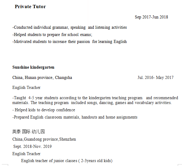 國(guó)籍: 美國(guó) 求職意向: 教師