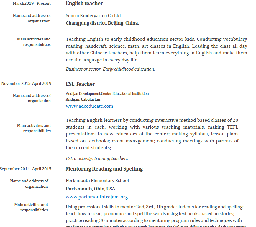 國籍: 美國 求職意向: 教師