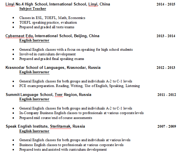 國(guó)籍: 俄羅斯 求職意向: 教師