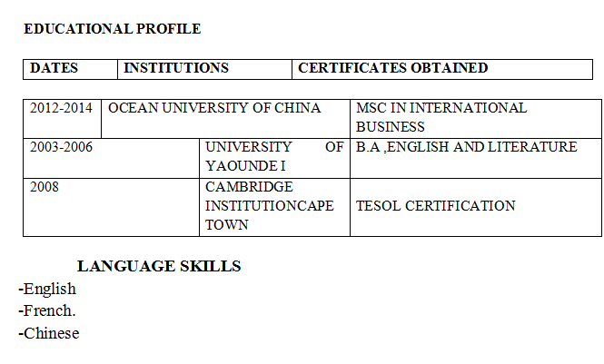 國(guó)籍: 喀麥隆 求職意向: 教師