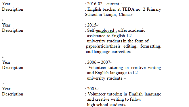 國籍: 新西蘭 求職意向: 教師