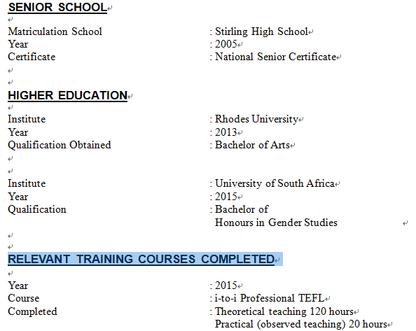 國籍: 喀麥隆 求職意向: 教師