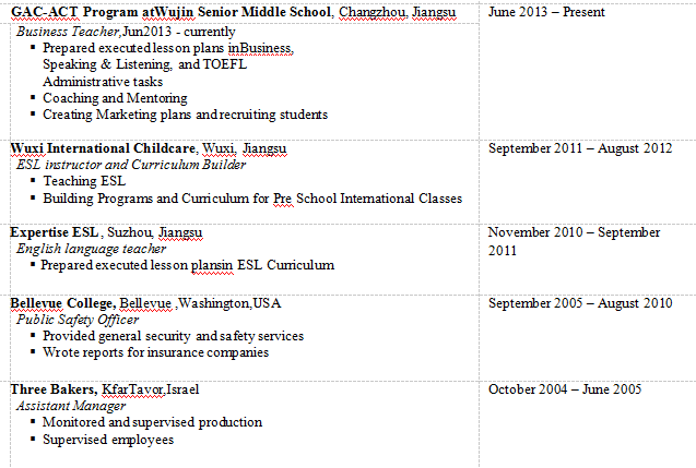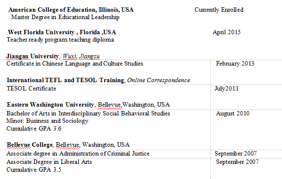 國(guó)籍: 美國(guó) 求職意向: 教師