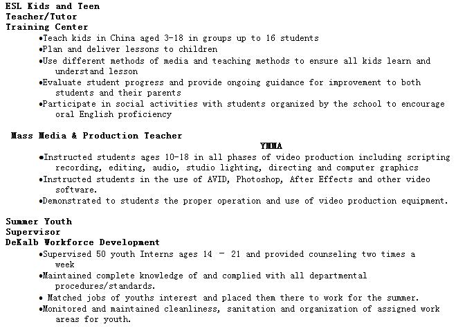 國籍: 美國 求職意向: 教師