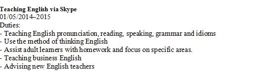 機(jī)械專業(yè),本科有TESOL,兩年教學(xué)經(jīng)驗(yàn)。任何城市可接受。發(fā)音很好。有商務(wù)英語(yǔ)教學(xué)證書。教過小學(xué)數(shù)學(xué)。 |