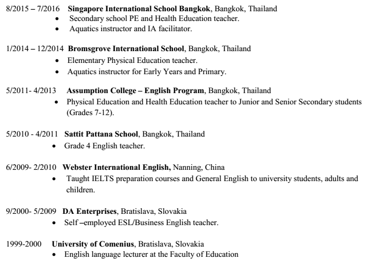 現(xiàn)在泰國(guó)任教,十多年各年齡段經(jīng)驗(yàn),希望找份2017年2月體育老師職位。 |