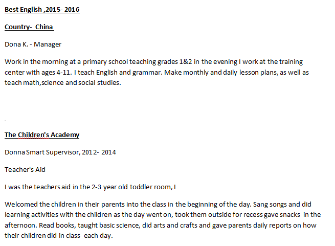 國(guó)籍: 津巴布韋 求職意向: 教師