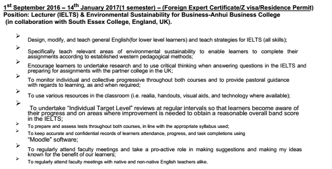 現(xiàn)在一所大學(xué)教學(xué),有工簽,教過(guò)雅思托福商務(wù)英語(yǔ),有小學(xué)到大學(xué)多年教學(xué)經(jīng)驗(yàn),求職明年2月職位,最好大學(xué)職位。 |