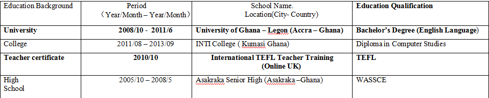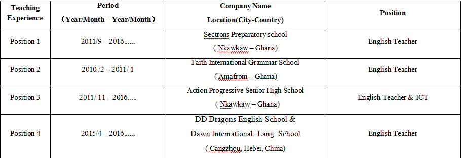 國籍: 南非 求職意向: 教師