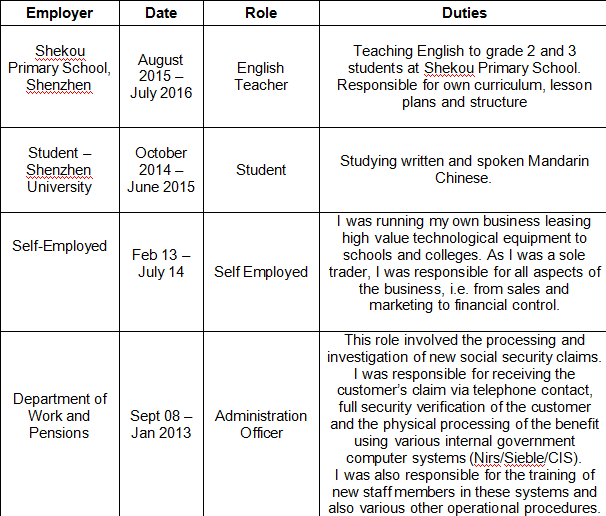 國籍: 愛爾蘭 求職意向: 教師