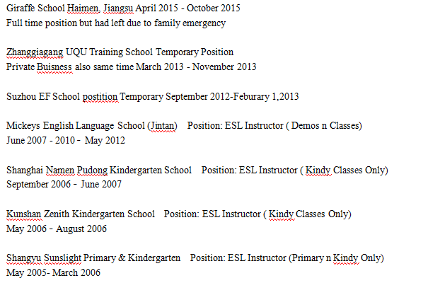 教育專業(yè)本科,有TESOL。找威海附近,考慮輔導班。工簽資料已全。中國工作過9年,小學幼兒園培訓班教學經(jīng)驗豐富。 |