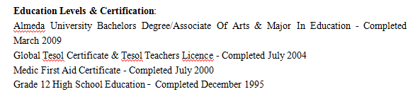 國籍: 加納 求職意向: 教師