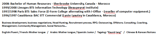 法國摩洛哥雙國籍,現(xiàn)在巴厘島志愿教學(xué),有英美工作經(jīng)驗,可以盡快上崗。 |