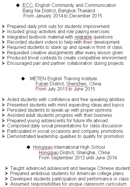 國籍: 俄羅斯 求職意向: 教師