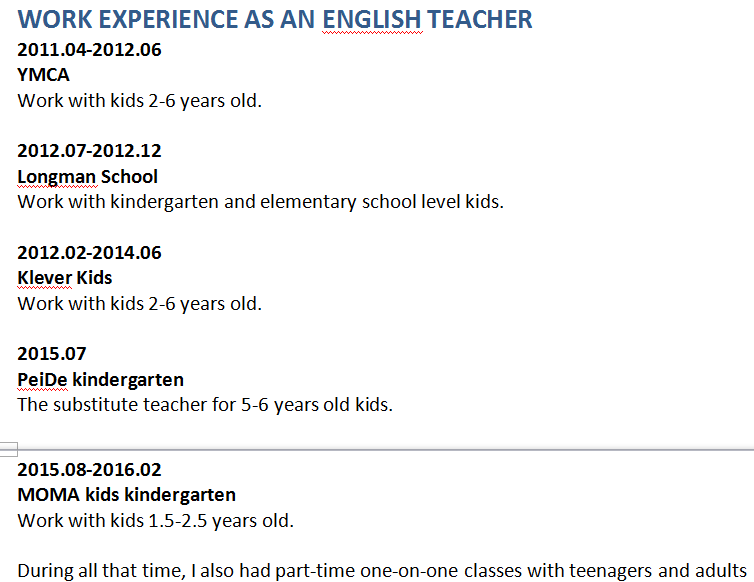 國籍: 其他 求職意向: 教師