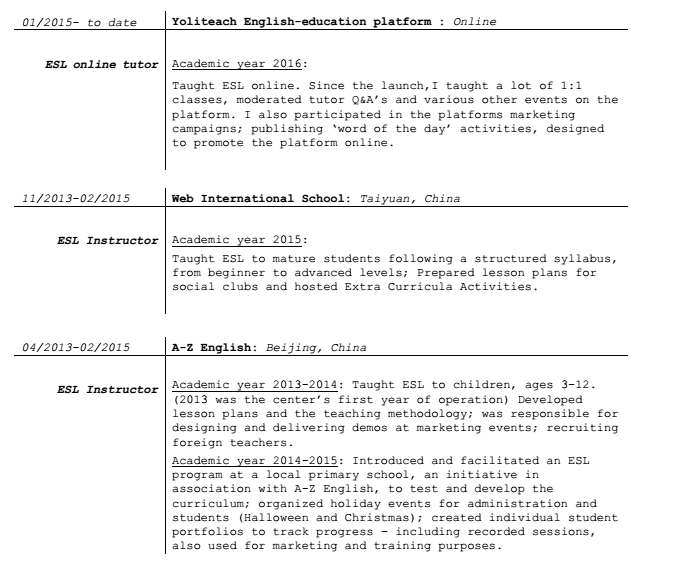國(guó)籍: 美國(guó) 求職意向: 教師