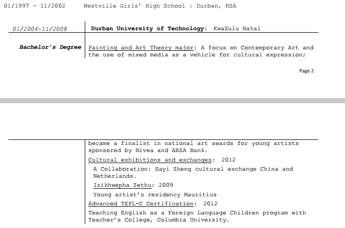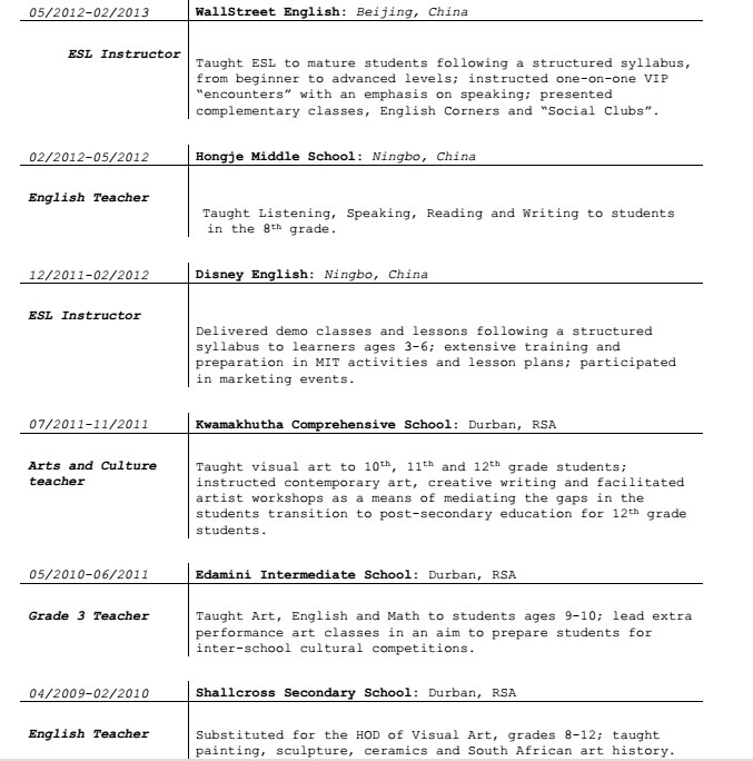 國(guó)籍: 津巴布韋 求職意向: 教師
