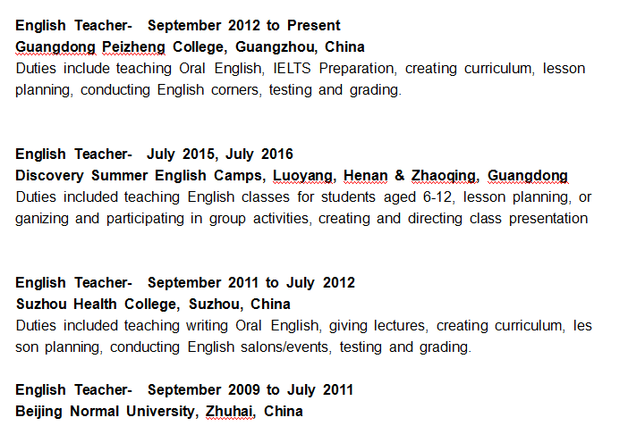 本科有TEFL,英語專業(yè),十二年教學經驗,小學到大學都教過,寫作商務英語雅思經驗。找公立或者私立學校,也可以考慮培訓班。工簽。只找廣州工作。 |