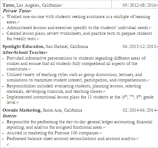 美國華裔,出生和成長在美國。加利福尼亞大學本科,做過多年家教。盡快上崗。南方城市。中學生最好,其他都考慮。要工簽。 |