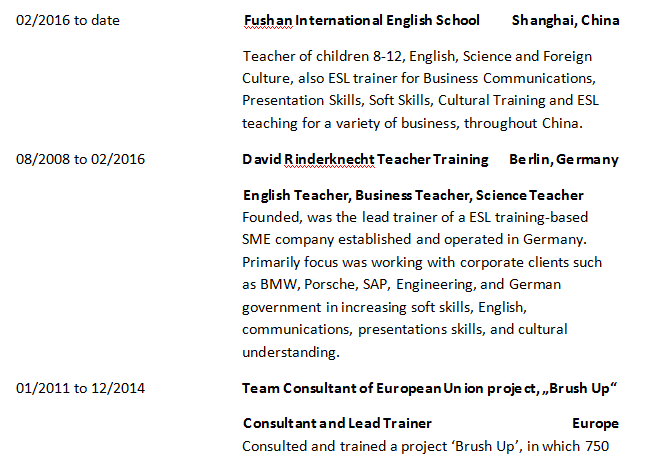 國籍: 美國 求職意向: 教師