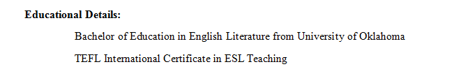 國(guó)籍: 美國(guó) 求職意向: 教師