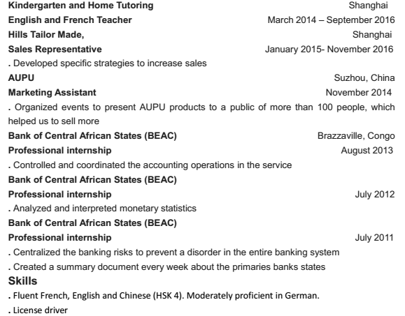 國籍: 其他 求職意向: 教師