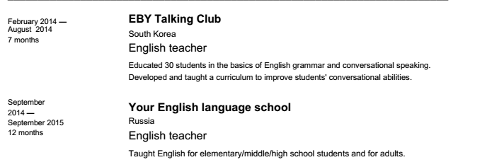現(xiàn)在俄羅斯,一月初到中國。本科,有TEFL,兩年左右教學(xué)經(jīng)驗(yàn)。1年商務(wù)簽。想找深圳上海或者東南方好一些的城市。各年齡段都可以教,考慮幼兒園培訓(xùn)學(xué)校。 |