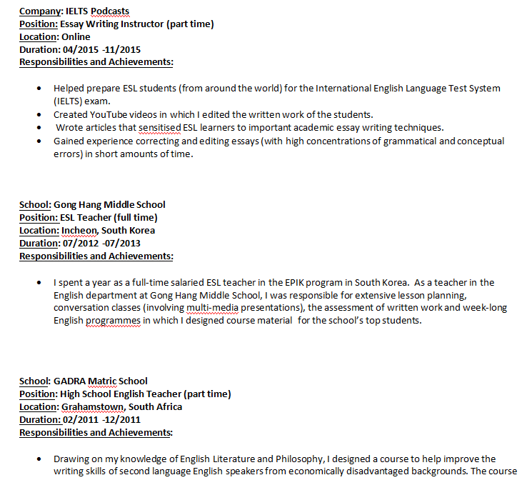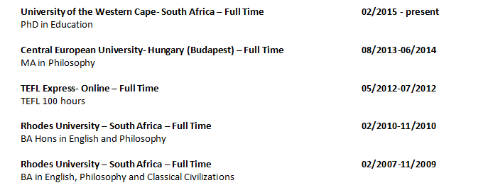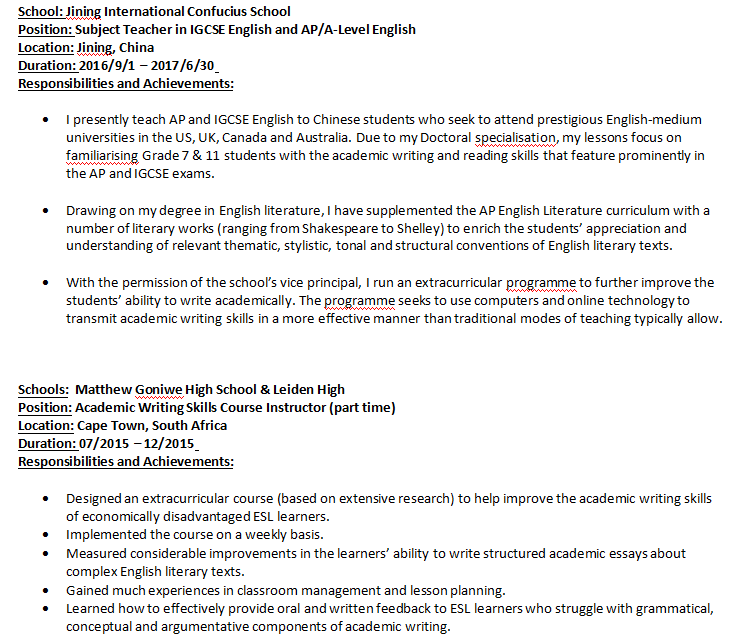國籍: 南非 求職意向: 教師