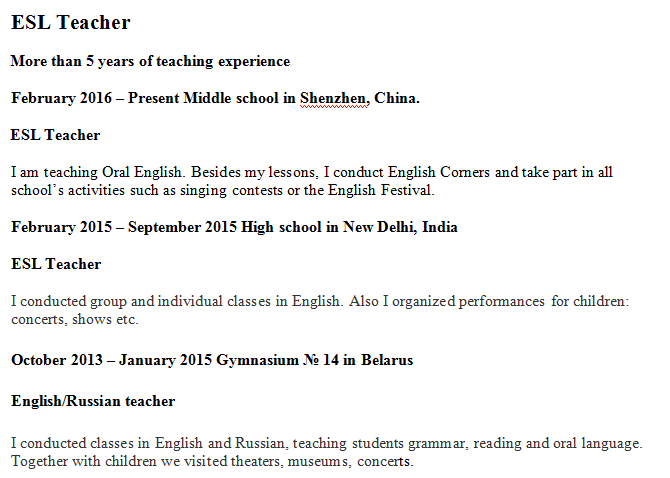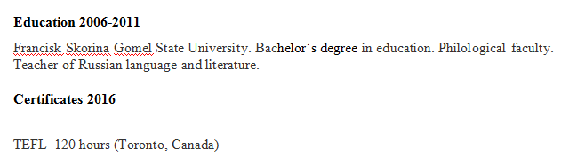 白俄羅斯女,本科有TEFL,教育專業(yè)本科,多年教學(xué)經(jīng)驗,現(xiàn)在一所中學(xué)做英語教師,期望找大學(xué)職位。 |