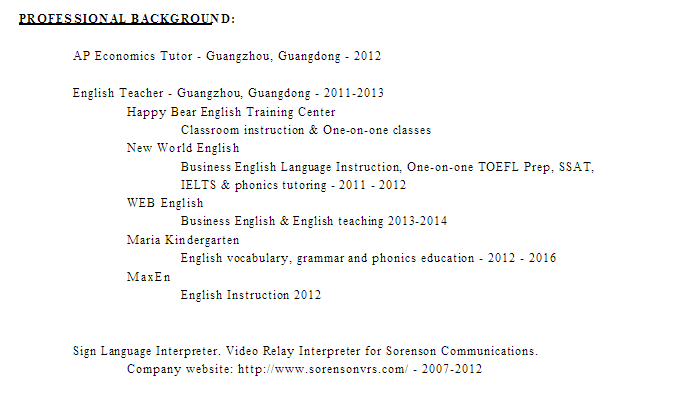 美國男,有TESOL,有碩士學(xué)位同等學(xué)力翻譯證 |