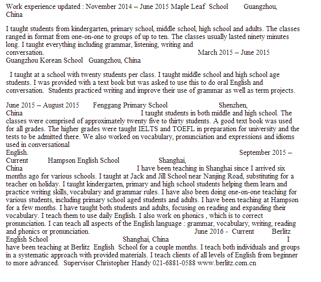 國(guó)籍: 美國(guó) 求職意向: 教師