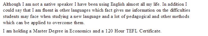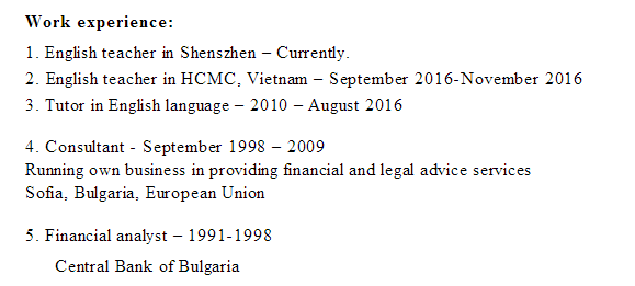 保加利亞。碩士有TEFL,多年工作經(jīng)驗,培訓班私人家教教學經(jīng)驗。商務簽,到期可以自理延期,有工簽最好。