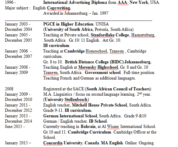 國籍: 西班牙 求職意向: 教師