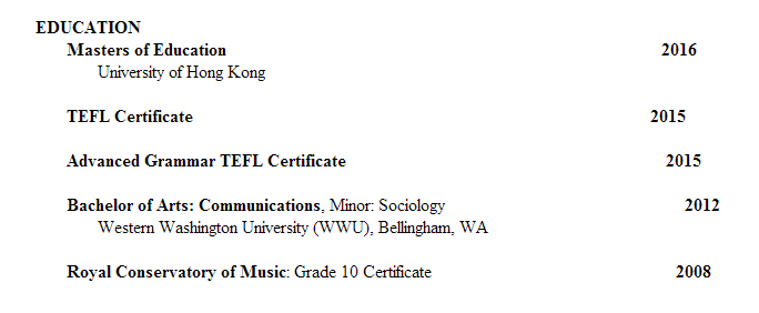 國籍: 加拿大 求職意向: 教師