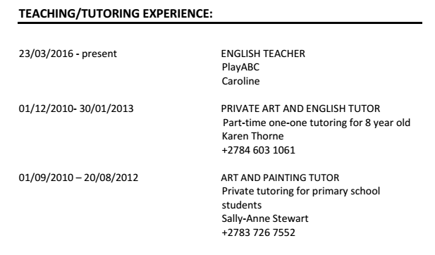 國籍: 未知 求職意向: 教師