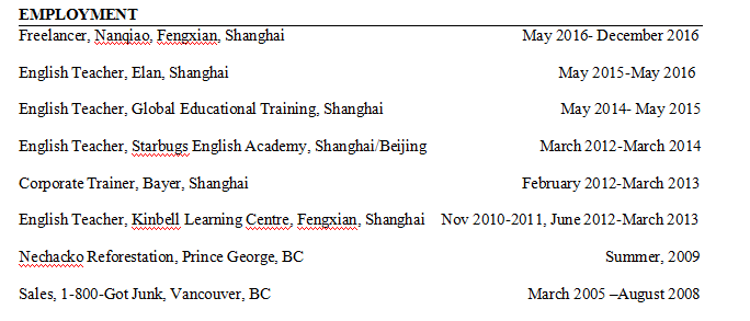 加拿大男,心理學本科學位,求職上海,經驗豐富 | |||