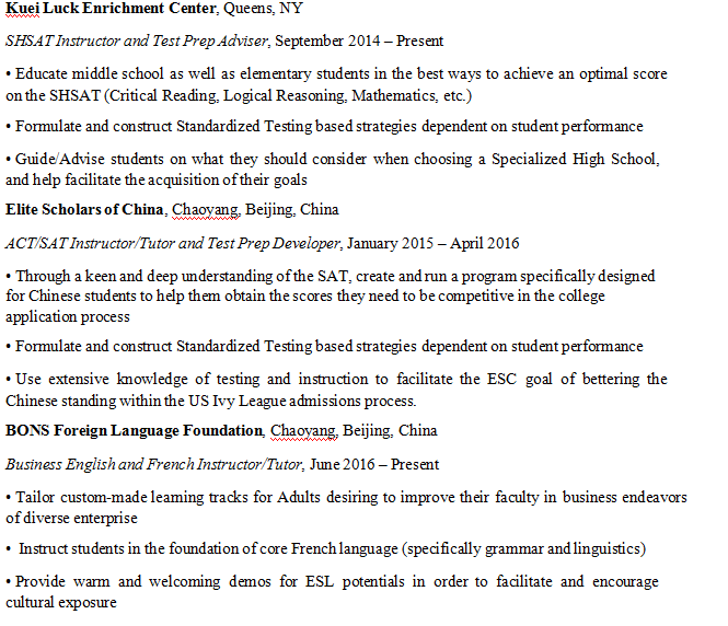 英語文學(xué)本科。S2簽。8歲以上孩子教學(xué)經(jīng)驗多,有豐富的托福,SAT/ACT教學(xué)經(jīng)驗,可教商務(wù)英語,文學(xué)寫作,法語等學(xué)科。 |