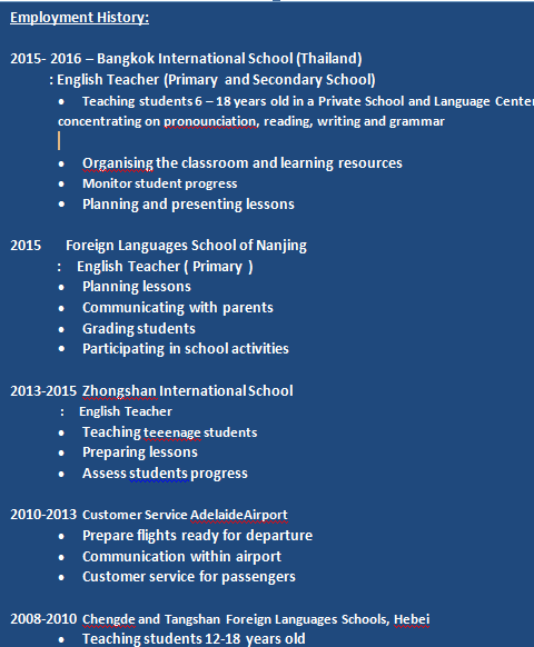 國籍: 英國 求職意向: 教師