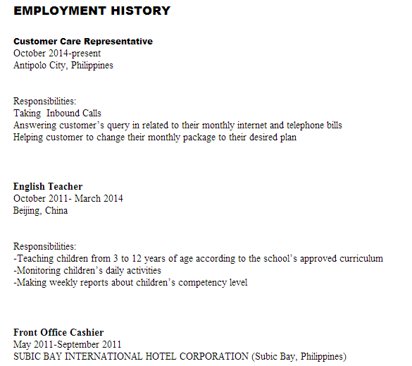 國籍: 菲律賓 求職意向: 教師