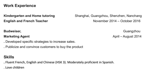 國籍: 德國 求職意向: 教師