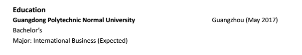 加拿大剛果雙國籍,現(xiàn)在是廣東一所大學大四學生,有充足時間全職工作,求職上海。 |